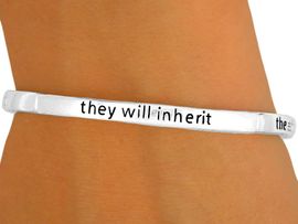 Polished Silver Finish Stackable Stretch Bracelet Reads, "Blessed Are The Meek, For They Will Inherit The Earth. (Matthew 5:5)"