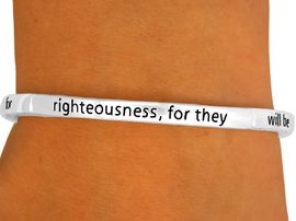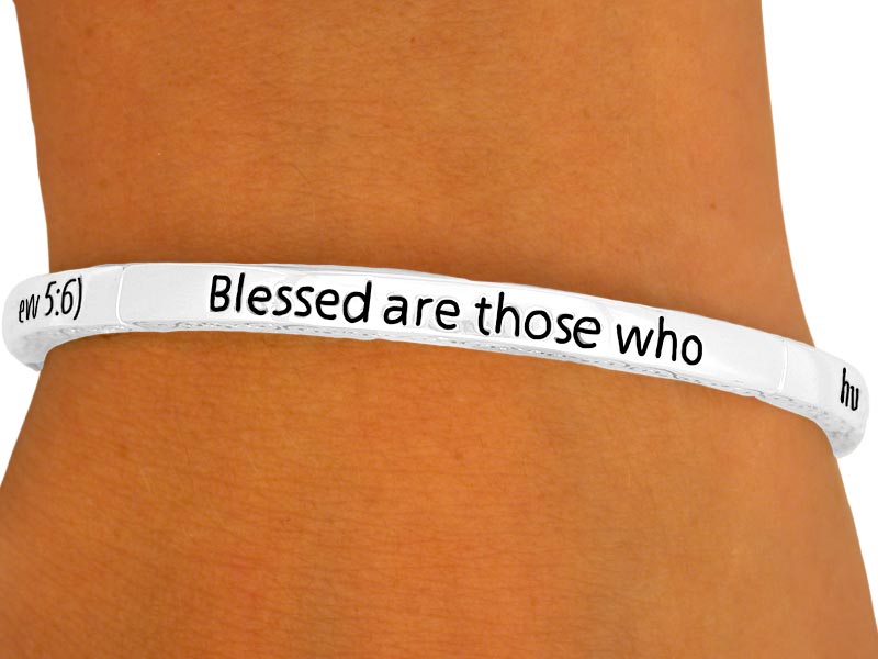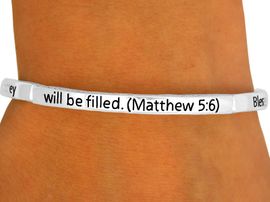 Lead & Nickel Free!! Polished Silver Tone Stackable Stretch Bracelet Reads, "Blessed Are Those Who Hunger And Thirst For Righteousness, For They Will Be Filled. (Matthew 5:6)"