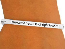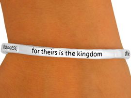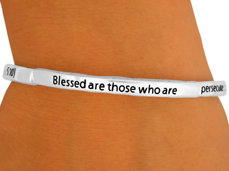 Lead & Nickel Free!! Polished Silver Tone Stackable Stretch Bracelet Reads, "Blessed Are Those Who Are Persecuted Because Of Righteousness For Theirs Is The Kingdom Of Heaven. (Matthew 5:10)"
