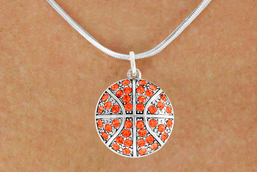 Exclusively Ours! Lead & Nickel Free Austrian Orange Crystal Accented Basketball Charm Comes On A Necklace Style Of Your Choice: Ball Chain, Regular Chain, Snake Chain, Black Suede Leatherette, Or Brown Suede Leatherette.