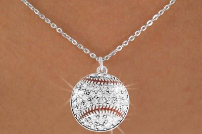 Exclusively Ours! Beautiful Lead & Nickel Free Austrian Crystal Accented Baseball Charm Comes On A Necklace Style Of Your Choice: Ball Chain, Regular Chain, Snake Chain, Black Suede Leatherette, Or Brown Suede Leatherette.