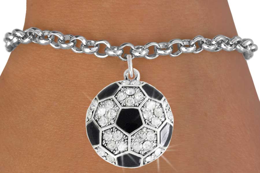Exclusively Ours! Lead & Nickel Free Austrian Crystal Accented Soccer Ball Charm Comes On A Bracelet Of Your Choice: Lobster Clasp Chain, Toggle Chain, Brown Suede Leatherette, Or Black Suede Leatherette.