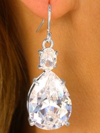 Magnificent! Is The Only Way We Can Describe The Incredible Large Stone In The Necklace And Earring. This Sumptuous Dazzling Silver Finish Lobster Clasp Necklace Dangles A Large Teardrop Of Genuine Austrian Crystal. Necklace Includes Matching Fishhook Wire Earrings.