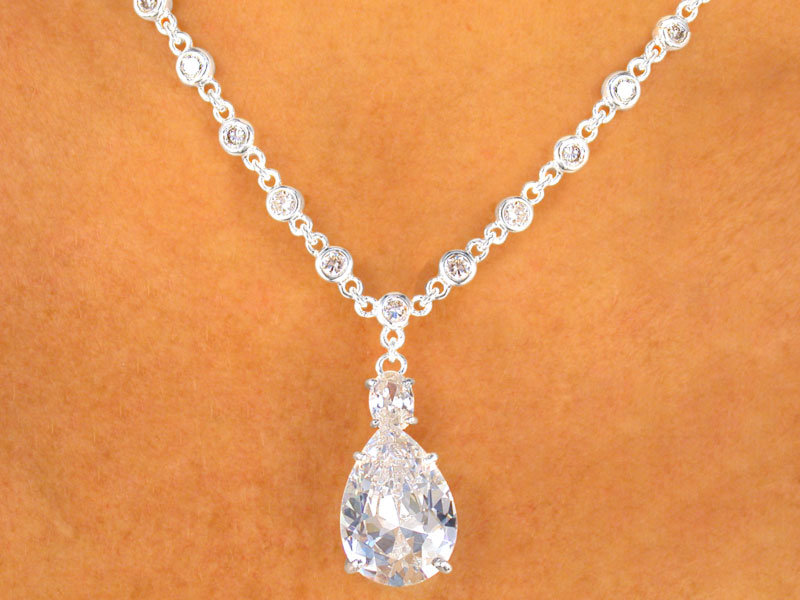 <BR>                  LEAD AND NICKEL FREE!!<BR>    W9236NE - DAZZLING SILVER FINISH<Br>GENUINE AUSTRIAN CRYSTAL TEARDROP<Br>               NECKLACE & EARRING SET<Br>                 FROM $65.81 TO $121.50