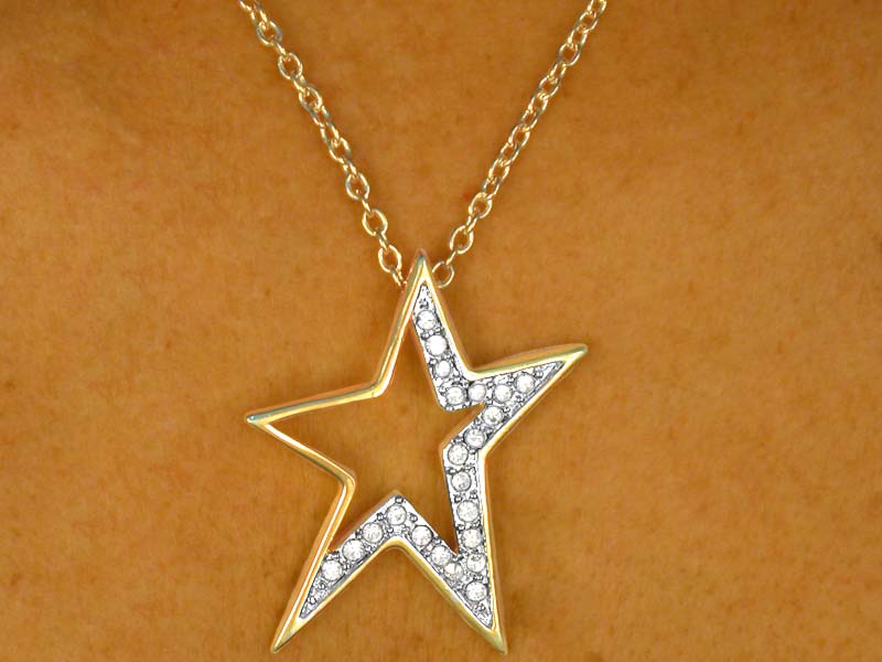 <Br>                  EXCLUSIVELY OURS!<br>W9377NE -PAVE AUSTRIAN CRYSTAL <Br>  ACCENTED TWO TONE FINISH STAR <bR>         NECKLACE AS LOW AS $7.90