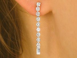 A Thin Silver Finish Lobster Clasp Dangle Necklace Is Adorned With Genuine Austrian Crystals. Necklace Includes Matching, Hypoallergenic Titanium Post Earrings.