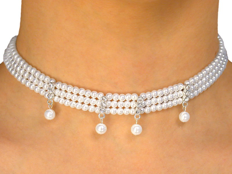 Lobster Clasp Choker Is Designed With Glossy White Faux Pearls & Columns Of Four Stacked Austrian Crystals. From Each Column Hangs Another Faux Pearl. Choker Includes Matching Hypoallergenic Titanium Post Earrings.