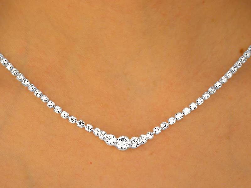 This Polished Silver Finish Lobster Clasp Necklace Glitters With Genuine Austrian Crystals. The Center Displays A Slight Curve Of Graduating Crystals. Necklace Includes Matching Hypoallergenic Titanium Post Earrings.